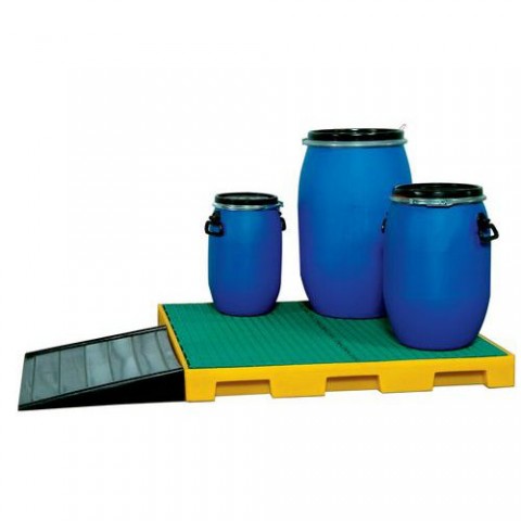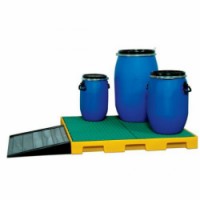 Plastová vana pro zachycování unikajících kapalin. Vhodné pro skladování látek ohrožujících vodu a hořlavých kapalin. Kapacita pro 4 sudy o objemu 200 l. Nízká stavební výška, možnost dokoupení nájezdové hrany.Plastová záchytná vana s roštem, kapacita 200 l