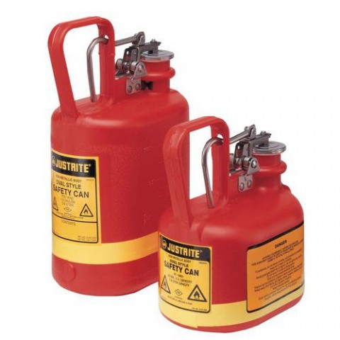 Bezpečnostní nádoby vyrobené z polyetylenu na hořlavé a žíravé kapaliny. Opatřené vnitřním filtrem zpomalující hoření v nádobě. Regulace průtoku kapaliny pomocí spouštěcí rukojeti. Vybavené samouzavíracím systémem z nerezové oceli.Plastové bezpečnostní nádoby na hořlaviny Justrite s úchytem