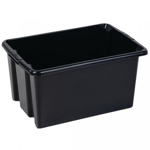 Černé boxy pro skladování nebo přepravu věcí, dokumentů nebo zboží. Vyrobené z recyklovaného polypropylenu. Možnost stohování více kusů na sebe.Plastové úložné boxy Manutan Expert, černé