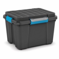 Plastové úložné boxy s klipovým, hermeticky uzavřeným, víkem pro univerzální použití. Boxy jsou odolné proti stříkající vodě (IP44). Modrá kolečka a postranní madla pro snadnou manipulaci. Stohovatelné.Plastové úložné boxy s víkem na klip Scuba, černé