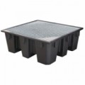 Záchytná vana na 1 IBC s roštem nebo bez něj. Vyjímatelná ocelová nebo HDPE mřížka. Průchod vidlí na 2 stranách. Hloubka vhodná pro paletové regály.Plastové záchytné vany pod IBC - Manutan Expert