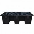 Plastová vana pro zachycování unikajících kapalin. Vhodné pro skladování látek ohrožujících vodu a hořlavých kapalin. Kapacita pro 2 sudy o objemu 200 l. Nízká stavební výška, možnost dokoupení nájezdové hrany.Plastová záchytná vana s roštem, kapacita 81 l