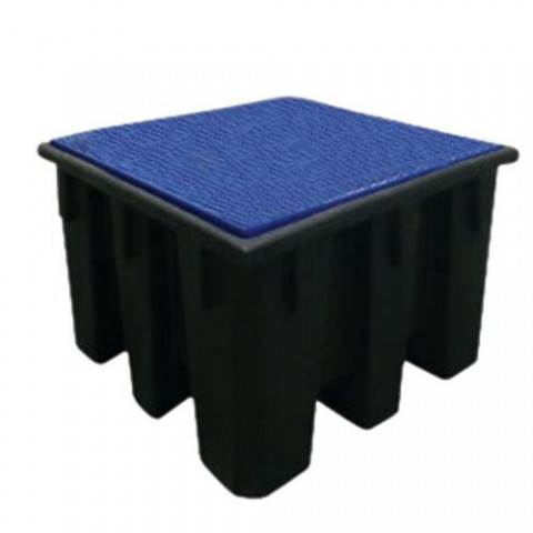 Plastové retenční vany s vysokým objemem pro umístění pod IBC kontejner. Možnost volby plastového roštu nebo roštu z galvanizované oceli. Vyrobené z recyklovaného polyetylenu. Odolné vůči mnoha chemikáliím a korozi. Možnost přemístění pomocí paletového vozíku díky otvorům ze všech čtyř stran.Plastové záchytné vany pod IBC kontejner, 1 100 l - Manutan Expert