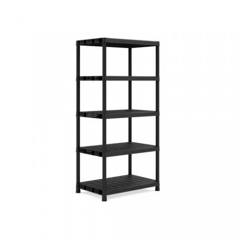 Plastový regál s pěti policemi a moderním designem. Výhodou policového regálu je jeho jednoduchá montáž a demontáž bez použití nářadí. Tento stacionární regál je ideální i do venkovního prostředí díky lehce omyvatelnému a antikoroznímu povrchu. Háčky na boční stěně regálu umožňují zavěšení nářadí. rozměry v x š x h: 187 x 90 x 60 cm nosnost na polici: 50 kg materiál konstrukce: polypropylen materiál polic: polypropylen počet polic: 5 ks typ: základní barva konstrukce: černá barva polic: černá balení: 1 ks snadná montáž a demontáž bez nářadí, dodáváno v demontovaném stavuPlastový regál, základní, 187 x 90 x 60 cm, 5 polic, černý
