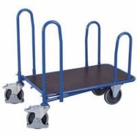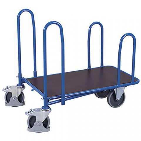 C + C plošinové vozíky, které lze do sebe zasouvat a šetřit tak místo. 4 bočnice, které zamezuji vypadávání nákladu. Ložná plocha z protiskluzové a voděodolné překližky. 2 pevná a 2 otočná kola s brzdou. Šedá kola z termoplastické pryže nezanechávající stopy na plastovém ráfku s přesnými kuličkovými ložisky.Plošinové vozíky C + C s protiskluzovým povrchem a bočnicemi, do 400 kg