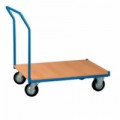 Manipulační vozík s pevnou ocelovou konstrukcí, ojí a velkou ložnou plochou. Vhodný k přepravě rozměrných a těžkých břemen. Ložná plocha je vyrobena z laminované dřevotřísky. Pohyb zajišťují čtyři dušová kola s valivými jehlovými ložisky. Kola jsou široká 78 mm a jsou vybavena ochrannými kryty. Povrchová úprava práškovým lakem.Ruční plošinový vůz, do 700 kg