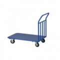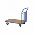 Manipulační vozík s pevnou ocelovou konstrukcí a madlem. Ložná plocha je vyrobena z vysokopevnostní voděodolné překližky odolné proti mechanickému poškození. Pohyb zajišťují čtyři kola s valivými jehlovými ložisky, z nichž dvě jsou pevná a dvě otočná. Povrchová úprava práškovým lakem.Plošinový vozík s madlem, do 150 kg