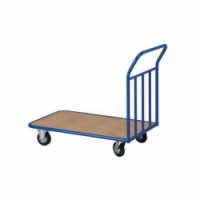 Manipulační vozík s pevnou ocelovou konstrukcí a vyztuženým madlem. Svařovaná konstrukce zajišťuje vyšší stabilitu převáženého materiálu. Ložná plocha je vyrobena z laminované dřevotřísky v odstínu buk. Pohyb zajišťují čtyři kola s valivými jehlovými ložisky, z nichž dvě jsou pevná a dvě otočná. Kola jsou vybavena poklicemi, které brání namotávání nití, provázků a zanášení ložiska jinými nečistotami. Povrchová úprava práškovým lakem.Plošinový vozík s vyztuženým madlem, do 250 kg