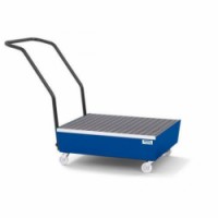 Transportní záchytná vana se zinkovaným roštem pro přepravu kapalin. Lze přepravit 2 sudy o objemu 60 l. Jednoduchou manipulaci zajišťují pevné madlo a čtyři otočná kola z polyamidu. Výška vany od země je 276 mm. Kvalitní svařovaná konstrukce s lakovaným povrchem práškovou barvou.Pojízdná záchytná vana, na 2 sudy, objem 65 l, lakovaná
