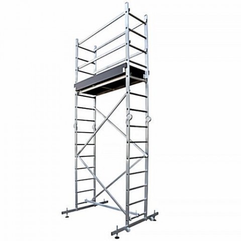 Pojizdné hlinikové lešení ideální pro stavbu, rekonstrukci nebo domácí práci a to jak v exteriéru i interiéru. Po sklopení zabere malý prostor, což umožňuje pohodlnou přepravu a skladování. Jednoduchá montáž a demontáž. Montované plastové kolečka umožňují snadný posun lešení. Lešení má bezpečnostní certifikaci TÜV.Pojizdné hliníkové lešení Hector s plošinou