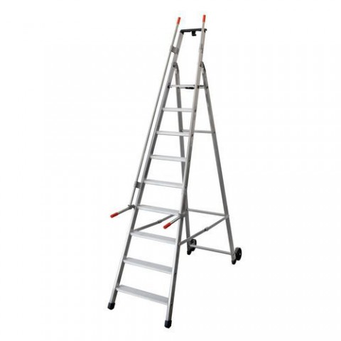 Pojízdné hliníkové schůdky Facal s držákem, 9 stupňů