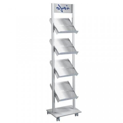 Robustní mobilní stojan na brožury.Pojízdné prezentační stojan Rico, 4 přihrádky