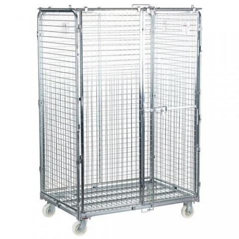 Pojízdný klecový vozík vhodný pro převážení a skladování zboží. Přední stěna složena z dvoukřídlových dveří. Mobilitu zajišťují 2 pevná a 2 otočná kola. Možnost uzamčení dveří visacím zámkem.Pojízdný rollkontejner, do 600 kg, uzamykatelný - Manutan Expert