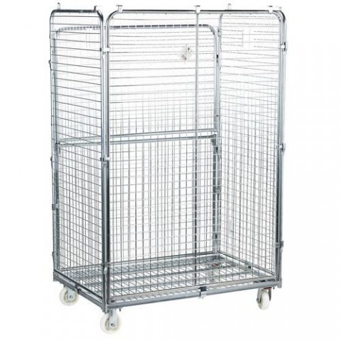 Pojízdný klecový vozík vhodný pro převážení a skladování zboží. Přední stěna složena ze dvou odnímatelných mříží. Mobilitu zajišťují 2 pevná a 2 otočná kola.Pojízdný rollkontejner, do 600 kg - Manutan Expert Maxi 3