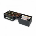 Pokladní zásuvka pro běžné použití Rozměry: 46 cm (š) x 17 cm (h) x 10 cm (v) Testováno minimálně na 1 milion otevření S reliéfním kovovým víčkem Elektrické otevírání a otevírání na klíč Nastavitelná a vyjímatelná přihrádka 6 úložných míst na bankovky / 8 na mince Obsahuje oddělený prostor pro ukládání velkých částek a cenných papírů, aby nebyly na očích Kompatibilní s pokladními tiskárnami a registračními pokladnami RJ12 (12 V / 24 V) S 2polohovým zámkem (pohotovostní režim/odemčeno) Přídavná přihrádka a uzamykatelný uzávěr jako volitelný doplněk Není určeno k připevnění pod/na pokladní pult, vhodné k umístění kupř. do odpovídajícího výřezu v pultu Hmotnost: 4,3 kg Napájení: 12V/24V V balení také 2 ks klíčůPokladní zásuvka SAFESCAN SD-4617S