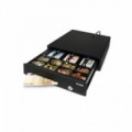 Pokladní zásuvka pro nenáročné použití Rozměry: 41 cm (š) x 41,5 cm (h) x 11,5 cm (v) Silný kovový plášť Testováno minimálně na 500.000 otevření Elektrické otevírání a otevírání na klíč Vyjímatelný mincovník 4 úložná místa na bankovky / 8 na mince Obsahuje oddělený prostor pro ukládání velkých částek a cenných papírů, aby nebyly na očích. Kompatibilní s pokladními tiskárnami a registračními pokladnami RJ12 (12 V / 24 V) Obzvláště silný 3polohový zámek (zamčeno, pohotovostní režim a odemčeno) Hmotnost: 5,5 kg Napájení: 12V/24V Barva: černá V balení také 2 ks klíčůPokladní zásuvka SAFESCAN LD-4141