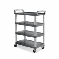 Plastový policový vozík se čtyřmi policemi pro všestranné využití. Police s protiskluzovým povrchem jsou vyrobené z polypropylenu a opatřené vyvýšenou 24mm hranou, která zabraňuje vypadávání předmětů z vozíku. Mobilitu zajišťují čtyři otočná kola s valivými kuličkovými ložisky.Policový vozík TTS se dvěma madly, do 150 kg, 4 police s vyvýšenými hranami, šedý