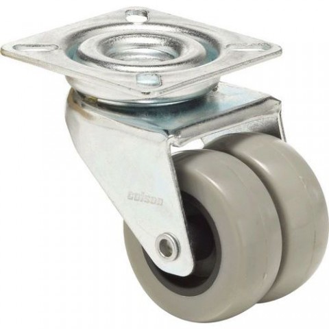 Dvojité otočné kolo z polypropylenu. Opatřené polyuretanovým běhounem v šedém provedení.Polyuretanové transportní kolo s přírubou, průměr 50 mm, otočné, kluzné ložisko
