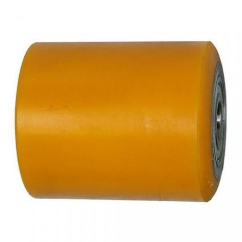 Polyuretanové válečky pro paletové vozíky. Vysoká zatížitelnost a lehký chod. materiál válečků: polyuretan průměr válečků: 82 mm šířka válečků: 70 - 100 mm nosnost: 600 - 1 000 kg způsob uchycení: bočním otvorem průměr bočního otvoru: 20 mm délka náboje: 70 - 100 mm ložiska: valivá (kuličková)Polyuretanové válečky pro paletové vozíky, průměr 82 mm, valivá ložiska