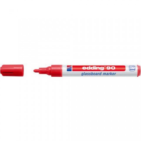 Popisovače vhodné na sklo, skleněné tabule, a zrcadla kombinují výhody tabulových a křídových popisovačů. Díky krycí schopnosti inkoustu zajistí, že je stopa na skle dobře viditelná. Smazatelnost stopy nasucho, není tedy nutné používat vlhčený hadr. Inkoust je rychleschnoucí a nezanechává ž??dný mastný film. Ideální pro vzkazy na zrcadle nebo na výzdobu na oknech. Popisovač je vybaven ventilovým systémem, a proto je před prvním použitím potřeba popisovač protřepat a lehkým pumpováním umožnit inkoustu stéci do hrotu.Popisovače na sklo Edding 90