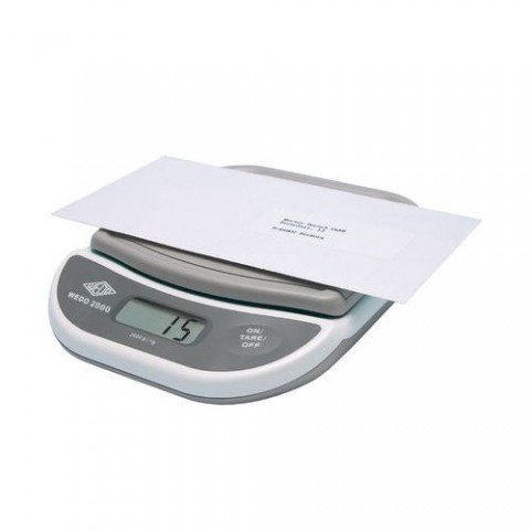 Poštovní váha s jednoduchým ovládáním pomocí dvou tlačítek a s kompaktními rozměry. Díky výklopnému dílu na vážicí ploše je váha vhodná zejména k vážení dopisů. Váha je napájena bateriemi, které jsou součástí balení, nebo adaptérem, který je nutno dokoupit.Poštovní váha Wedo 2000