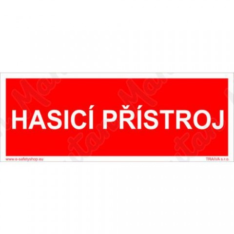 Bezpečnostní značka, tabulka nebo samolepka "Hasicí přístroj" je tištěna na vysoce kvalitním materiálu, barvami s vysokou odolností proti otěru a UV záření. Provedení plně odpovídá požadavkům právních a technických předpisů, zejména Nařízení vlády č. 375/2017 Sb., ČSN ISO 3864-1, ČSN ISO 3864-2, ČSN ISO 3864-3, ČSN ISO 3864-4. Bezpečnostní fotoluminiscenční doplňkové označení hasícího přístroje s popisem v českém jazyce. Tyto tabulky a samolepky se umisťují nad hasicí přístroje. V noci, nebo při zakouření tabulka nebo samolepka intenzívně svítí a umožňuje tak nalezení prostředků k hašení požáru.Požární tabulky, fotoluminiscenční - Hasicí přístroj