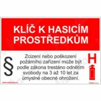 Bezpečnostní značení tabulkou, značkou nebo samolepkou "Klíč k hasicím prostředkům" je tištěno na vysoce kvalitním materiálu, barvami s vysokou odolností proti otěru a UV záření. Provedení je plně v souladu s požadavky právních a technických předpisů, zejména Nařízení vlády č. 375/2017 Sb., ČSN ISO 3864-1, ČSN ISO 3864-2, ČSN ISO 3864-3, ČSN ISO 3864-4.Požární tabulky, fotoluminiscenční - Klíč k hasicím prostředkům