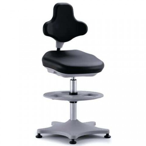 Pracovní antistatické židle snadno omyvatelné a odolné vůči dezinfekčním prostředkům. Plynulé nastavení výšky sedadla v rozmezí 550 až 800 mm. Výšku opěradla lze snadno a pohodlně nastavit během sezení. Automatické nastavení sklonu sedáku a opěradla podle potřeby.Pracovní antistatické ESD židle Labster Bimos 9101E s kolečky a kruhovou podnožkou, černá