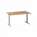 Výškově nastavitelné kancelářské stoly v rovném provedení. Deska z laminované dřevotřísky tl. 25 mm s 2mm ABS hranami. Dezén desky z divoké hrušky, třešně, buku nebo bílé barvy. Podnoží stolu v šedostříbrném provedení (RAL9022) je složeno ze tří segmentů. Zvedání zajišťují dva výkonné elektromotory. Dodáváno v demontovaném stavu.Výškově nastavitelné kancelářské stoly Alfa Up s šedým podnožím, 140 x 80 x 61,5-127,5 cm