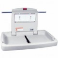 Antibakteriální ochrana. TUV certifikace Nastavitelný bezpečnostní pás. Přebalovací pult bez ostrých hran a rohů. Háčky na obou stranách pro snadný přístup k přebalovacím taškám.Skládací přebalovací pult Rubbermaid