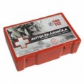 Přenosná lékárnička se stěnovým držákem vhodná na všechna pracoviště a provozy, kde dochází k manipulaci se zbožím, jako jsou sklady, obchodní prostory, případně prostory, kde se poskytují služby a jiná podobná pracoviště. Neoprenové těsnění ve víku zajišťuje prachotěsnost a hygienickou ochranu zdravotnického materiálu. Vnitřní členění pomocí desek z plexiskla, odolnost vůči nárazům. Kufr lze jednoduše vyjmout ze stěnového držáku a přenést na místo úrazu. Uzavírání dvěma otočnými uzávěry.Plastový kufr první pomoci se stěnovým držákem, 25 x 33,5 x 12,3 cm, s náplní SKLAD