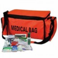 Oranžová zdravotnická brašna první pomoci v terénu. Vhodná především pro sportovní kluby a areály, cestovní kanceláře, rekreační střediska a školy v přírodě. Tašku tvoří 2 boční kapsy na zip, 1 hlavní kapsa s možností variabilního rozdělení přepážek a kapsiček na suchý zip, průhledné kapsy a gumová poutka na víku. Je opatřena popruhem k nošení přes rameno.Zdravotnická brašna první pomoci s náplní SKLAD