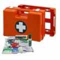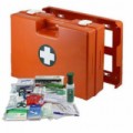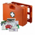 Přenosná lékárnička se stěnovým držákem vhodná na všechna pracoviště a provozy, kde dochází k manipulaci se zbožím, jako jsou sklady, obchodní prostory, případně prostory, kde se poskytují služby a jiná podobná pracoviště. Neoprenové těsnění ve víku zajišťuje prachotěsnost a hygienickou ochranu zdravotnického materiálu. Vnitřní členění pomocí desek z plexiskla, odolnost vůči nárazům. Kufr lze jednoduše vyjmout ze stěnového držáku a přenést na místo úrazu. Uzavírání dvěma otočnými uzávěry.Plastový kufr první pomoci se stěnovým držákem, 27 x 40 x 14 cm, s náplní SKLAD