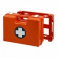 Přenosná lékárnička se stěnovým držákem vhodná na všechna pracoviště a provozy, kde dochází k manipulaci se zbožím, jako jsou sklady, obchodní prostory, případně prostory, kde se poskytují služby a jiná podobná pracoviště. Neoprenové těsnění ve víku zajišťuje prachotěsnost a hygienickou ochranu zdravotnického materiálu. Vnitřní členění pomocí desek z plexiskla, odolnost vůči nárazům. Kufr lze jednoduše vyjmout ze stěnového držáku a přenést na místo úrazu. Uzavírání dvěma otočnými uzávěry.Plastový kufr první pomoci se stěnovým držákem, 33,8 x 44,3 x 14,7 cm, s náplní SKLAD