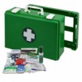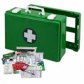 Přenosná lékárnička se stěnovým držákem vhodná do všech kancelářských a administrativních prostor, recepcí a podobných pracovišť s běžnou mírou rizika úrazu. Neoprenové těsnění ve víku zajišťuje prachotěsnost a hygienickou ochranu zdravotnického materiálu. Vnitřní členění pomocí desek z plexiskla, odolnost vůči náraz??m. Kufr lze jednoduše vyjmout ze stěnového držáku a přenést na místo úrazu. Uzavírání dvěma otočnými uzávěry.Plastový kufr první pomoci se stěnovým držákem, 33,8 x 44,3 x 14,7 cm, s náplní KANCELÁŘ