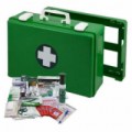 Přenosná lékárnička se stěnovým držákem vhodná na všechna výrobní pracoviště, provozy a prostory, montážní dílny, a další podobná pracoviště. Neoprenové těsnění ve víku zajišťuje prachotěsnost a hygienickou ochranu zdravotnického materiálu. Vnitřní členění pomocí desek z plexiskla, odolnost vůči nárazům. Kufr lze jednoduše vyjmout ze stěnového držáku a přenést na místo úrazu. Uzavírání dvěma otočnými uzávěry.Plastový kufr první pomoci se stěnovým držákem, 27 x 40 x 14 cm, s náplní VÝROBA