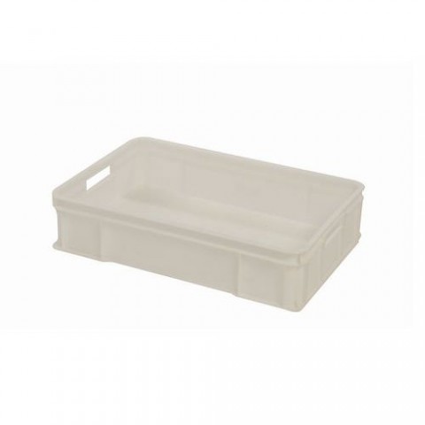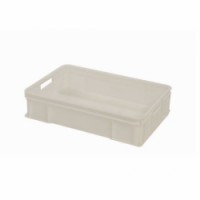 Přepravka bílé barvy určená primárně na přepravu a skladování chleba, pečiva a cukrovinek. Modulové rozměry 60 x 40 cm pro optimální využití prostoru na paletách. Splňuje podmínky pro styk s potravinami - prohlášení o shodě. Vyrobeno z vysokohustotního polyetylenu. materiál: polyetylen s vysokou hustotou certifikace: prohlášení o shodě (pro styk s potravinami) vnější rozměry v x š x h: 14,5 x 60 x 40 cm vnitřní rozměry v x š x h: 13 x 55,5 x 35 cm objem: 30 l nosnost: 10 kg stohovací nostnost: 200 kg provozní teplota min./max.: -40/+60 °C hmotnost: 1,5 kg barva: bíláPřepravka na pečivo a lahůdky, 14,5 x 60 x 40 cm
