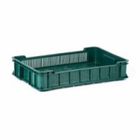 Nízká perforovaná přepravka z recyklovaného polyetylenu je určena primárně pro přepravu ovoce a zeleniny. Dodáváno v různých barvách, výběr konkrétní barvy není možný. Modulové rozměry 60 x 40 cm pro optimální využití prostoru na paletách.Přepravka na zeleninu, perforovaná, recyklovaná