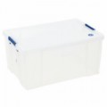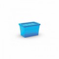 Multifunkční ukládací krabice s víky v modré barvě. Transparentní materiál umožňuje přehled o uložených předmětech bez nutnosti otevření. Boxy jsou stohovatelné. Boxy o objemu 50 a 60 l jsou vybaveny sundávacími kolečky pro lepší mobilitu.Plastové úložné boxy s víkem, modré
