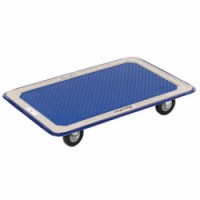 Univerzální přepravní vozík s protiskluzovým povrchem. Plošina je po stranách opatřena plastovou hranou odolnou vůči nárazům. Pohyb zajišťují dvě pevná a dvě otočná kola.Přepravní plošina Manutan Expert, do 150 kg
