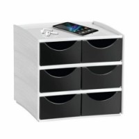 Úložné moduly MyCube mini jsou vyrobeny z plastu. Tyto moduly se snadno vejdou na stůl a pomohou Vám shromáždit a uložit veškeré drobné příslušenství a kancelářské potřeby. Ergonomické úchyty zajišťují snadné otevírání zásuvek. Zásuvky jsou vybaveny koncovými zarážkami, které zabraňují jejich vypadnutí, ale v případě potřeby je lze z modulu snadno vyjmout.Přihrádkový modul MyCube mini