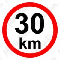 Tabulky, značky a samolepky "Omezení rychlosti – 30 km/hod" jsou tištěny na vysoce kvalitním materiálu, barvami s vysokou odolností proti otěru a UV záření. Provedení je plně v souladu s požadavky právních a technických předpisů, zejména Nařízení vlády č. 375/2017 Sb., ČSN ISO 3864-1, ČSN ISO 3864-2, ČSN ISO 3864-3, ČSN ISO 3864-4. Kvalitní samolepící reflexní značení nejvyšší povolené rychlosti vozidel. Je určeno pro vozidla kategorií M2, M3, N2, N3, O, OT, S . Podle vyhl. č. 341/2014 Sb musí mít na zádi karoserie v levé polovině vyznačenou nejvyšší povolenou rychlost z retroreflexního materiálu třídy 1 podle ČSN EN 12899-1. Není-li možno u přípojných vozidel kategorie O1, O2, R, vozidel kategorie S, jednonápravových traktorů s přívěsem a speciálních nosičů pracovních adaptérů umístit označení o průměru 200 mm, je přípustné použít označení o vnějším průměru 150 mm. Samolepka průměru 150 nebo 200 mm s označením nejvyšší povolené rychlosti v provedení z retroreflexní fólie třídy 1 dle ČPříkazové tabulky - Omezení rychlosti 30 km/h
