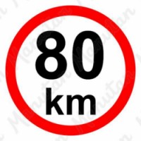 Tabulky, značky a samolepky "Omezení rychlosti – 80 km/hod" jsou tištěny na vysoce kvalitním materiálu, barvami s vysokou odolností proti otěru a UV záření. Provedení je plně v souladu s požadavky právních a technických předpisů, zejména Nařízení vlády č. 375/2017 Sb., ČSN ISO 3864-1, ČSN ISO 3864-2, ČSN ISO 3864-3, ČSN ISO 3864-4. Kvalitní samolepící reflexní značení nejvyšší povolené rychlosti vozidel. Je určeno pro vozidla kategorií M2, M3, N2, N3, O, OT, S . Podle vyhl. č. 341/2014 Sb musí mít na zádi karoserie v levé polovině vyznačenou nejvyšší povolenou rychlost z retroreflexního materiálu třídy 1 podle ČSN EN 12899-1. Není-li možno u přípojných vozidel kategorie O1, O2, R, vozidel kategorie S, jednonápravových traktorů s přívěsem a speciálních nosičů pracovních adaptérů umístit označení o průměru 200 mm, je přípustné použít označení o vnějším průměru 150 mm. Samolepka průměru 150 nebo 200 mm s označením nejvyšší povolené rychlosti v provedení z retroreflexní fólie třídy 1 dle ČPříkazové tabulky - Omezení rychlosti 80 km/h