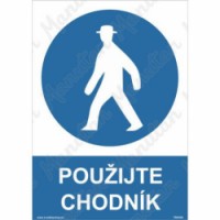 Bezpečnostní značka, tabulka nebo samolepka "Použijte chodník" je tištěna na vysoce kvalitním materiálu, barvami s vysokou odolností proti otěru a UV záření. Provedení plně odpovídá požadavkům právních a technických předpisů, zejména Nařízení vlády č. 375/2017 Sb., ČSN ISO 3864-1, ČSN ISO 3864-2, ČSN ISO 3864-3, ČSN ISO 3864-4.Příkazové tabulky - Použijte chodník