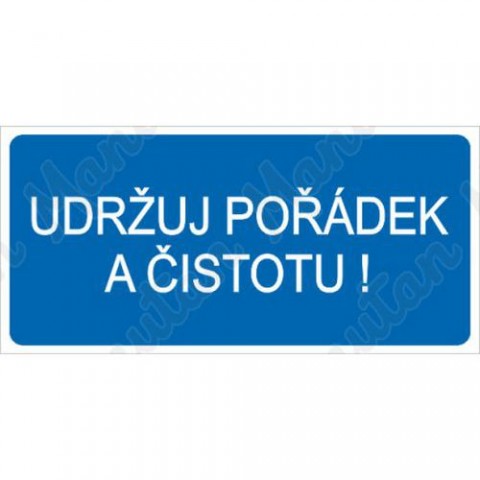 Značky, tabulky a samolepky "Udržuj pořádek a čistotu" tiskneme na velmi kvalitním materiálu, barvami s vysokou odolností proti otěru a UV záření. Tak, aby provedení značení bylo plně v souladu s Nařízením vlády č. 375/2017 Sb., ČSN ISO 3864 a ČSN ISO 3864-1.Příkazové tabulky - Udržuj pořádek a čistotu