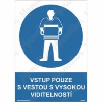 Bezpečnostní značení tabulkou, značkou nebo samolepkou "Vstup pouze s vestou s vysokou viditelností" je tištěno na vysoce kvalitním materiálu, barvami s vysokou odolností proti otěru a UV záření. Provedení je plně v souladu s požadavky právních a technických předpisů, zejména Nařízení vlády č. 375/2017 Sb., ČSN ISO 3864-1, ČSN ISO 3864-2, ČSN ISO 3864-3, ČSN ISO 3864-4.Příkazové tabulky - Vstup pouze s vestou s vysokou viditelností