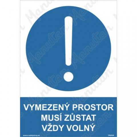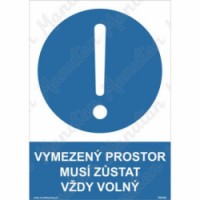 Bezpečnostní značka, tabulka nebo samolepka "Vymezený prostor musí zůstat vždy volný" plně odpovídá požadavkům právních a technických předpisů, zejména Nařízení vlády č. 375/2017 Sb., ČSN ISO 3864-1, ČSN ISO 3864-2, ČSN ISO 3864-3, ČSN ISO 3864-4. Tyto bezpečnostní tabulky a samolepky nařizují aby byl vždy daný prostor volný z důvodu bezpečnosti. Tabulky zvyšují BOZP na pracovišti.Příkazové tabulky - Vymezený prostor musí zůstat vždy volný