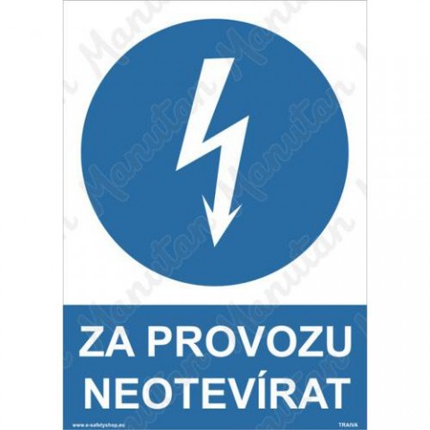 Tabulky, značky a samolepky "Za provozu neotvírat" jsou tištěny na vysoce kvalitním materiálu, barvami s vysokou odolností proti otěru a UV záření. Provedení je plně v souladu s požadavky právních a technických předpisů, zejména Nařízení vlády č. 375/2017 Sb., ČSN ISO 3864-1, ČSN ISO 3864-2, ČSN ISO 3864-3, ČSN ISO 3864-4.Příkazové tabulky - Za provozu neotvírat