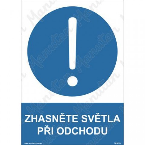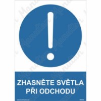 Bezpečnostní značení tabulkou, značkou nebo samolepkou "Zhasněte světla při odchodu" je tištěno na vysoce kvalitním materiálu, barvami s vysokou odolností proti otěru a UV záření. Tak, aby provedení značení bylo plně v souladu s Nařízením vlády č. 375/2017 Sb., ČSN ISO 3864 a ČSN ISO 3864-1.Příkazové tabulky - Zhasněte světla při odchodu