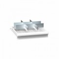 Dělicí příčky pro zásuvkové skříně umožňují rozdělení zásuvek na devět přihrádek. Příčky jsou vyrobeny z 1,5mm hliníkového plechu. Štěrbinové dělení z plechu Zn. Určeno pro zásuvky s čelem o výšce 7,5 cm.Dělicí příčky